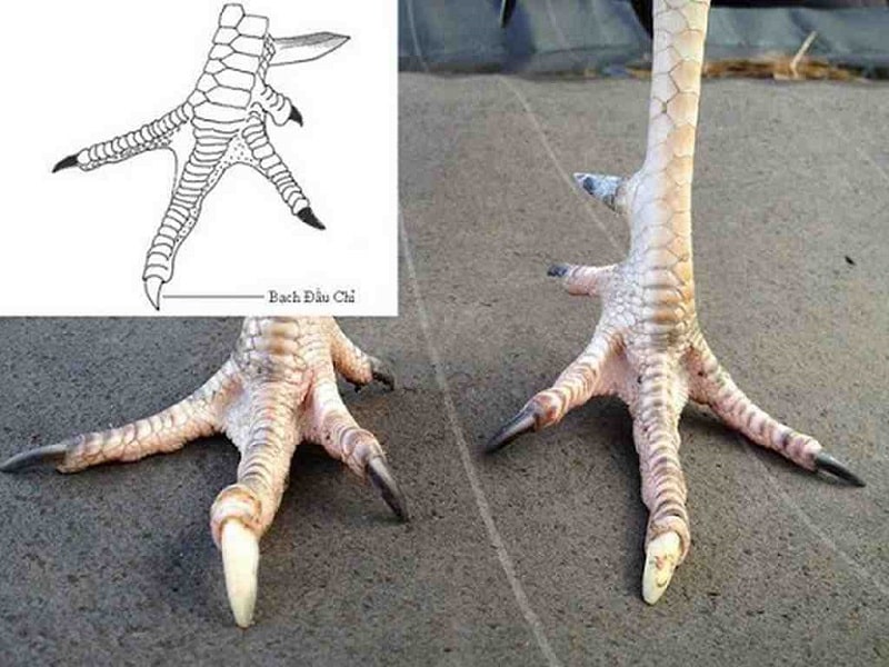 Gà bạch đầu chỉ có móng chúa màu trắng, các ngón còn lại màu đen
